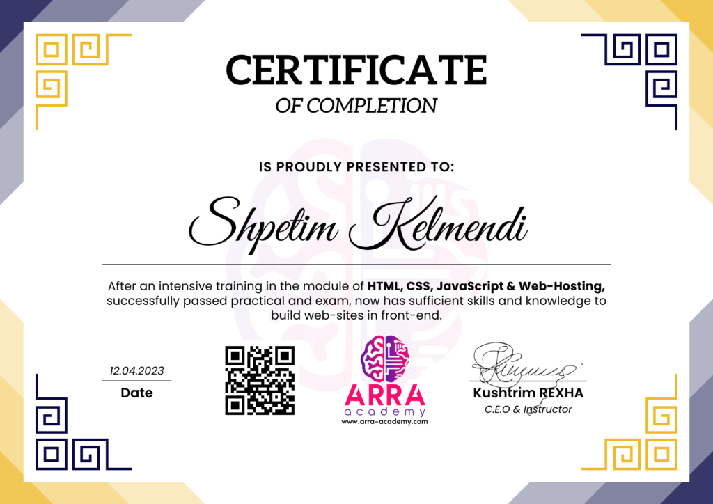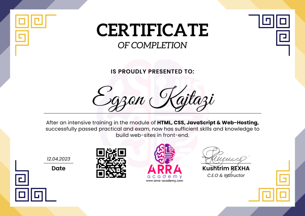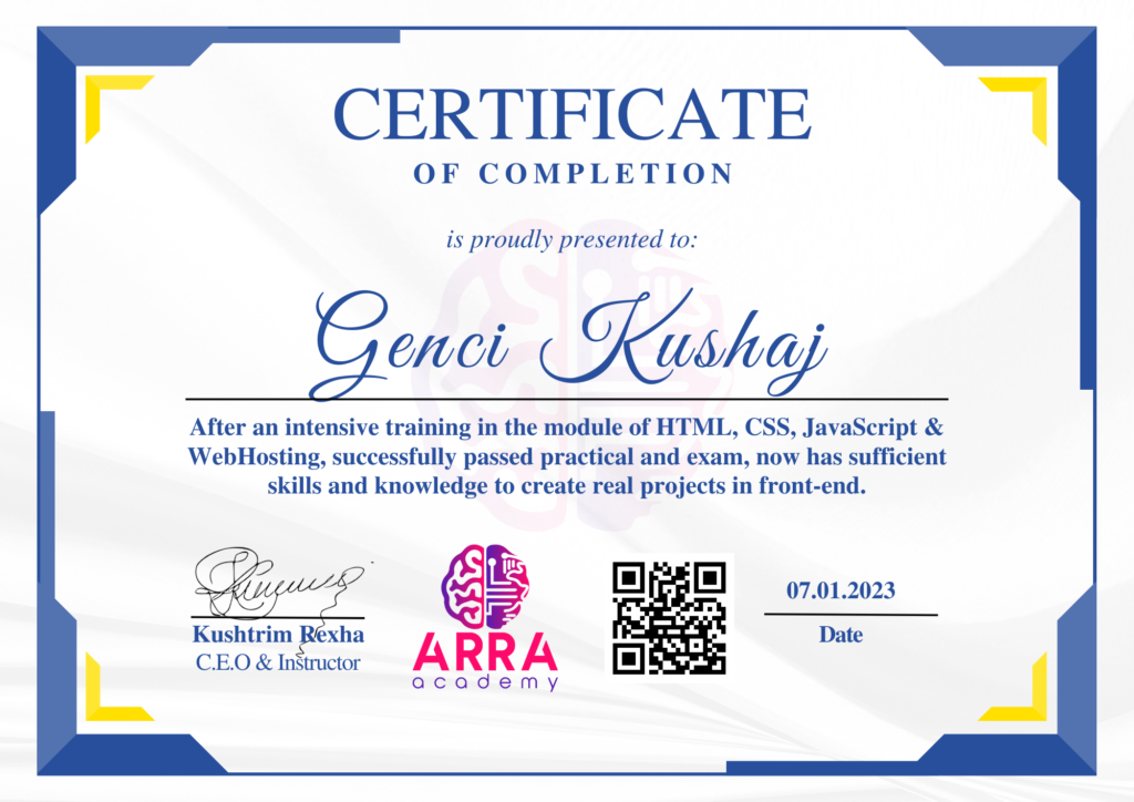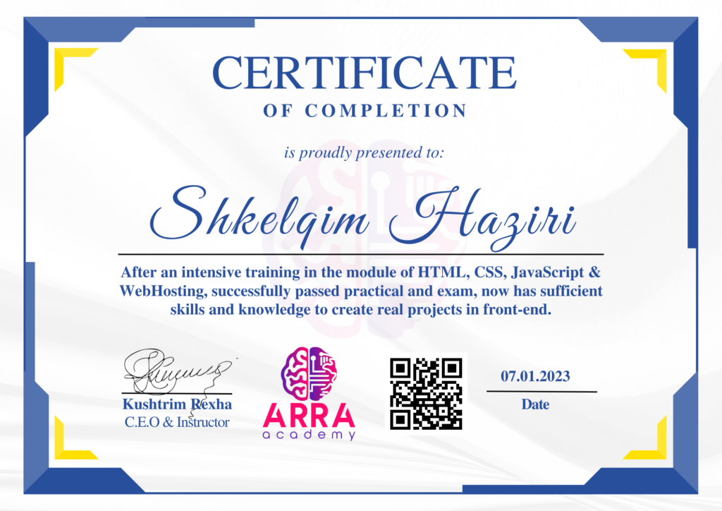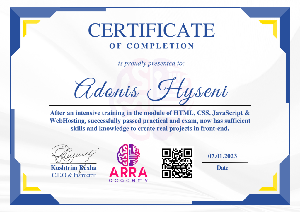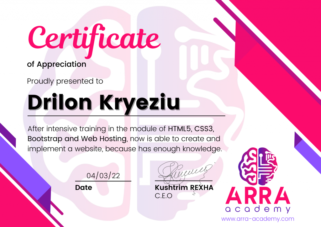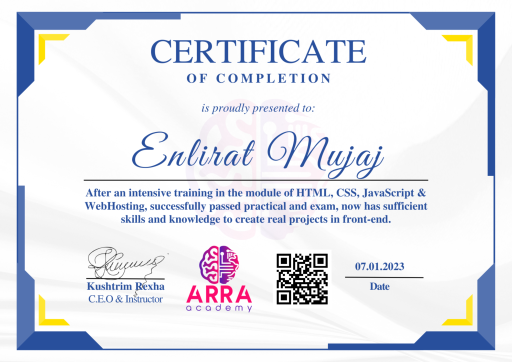 Çertifikatat nga moduli HTML/CSS/JAVASCRIPT & WEB-HOSTING