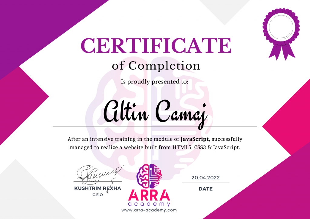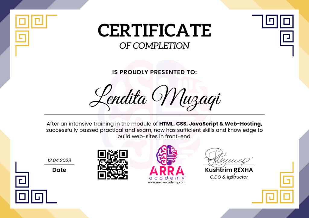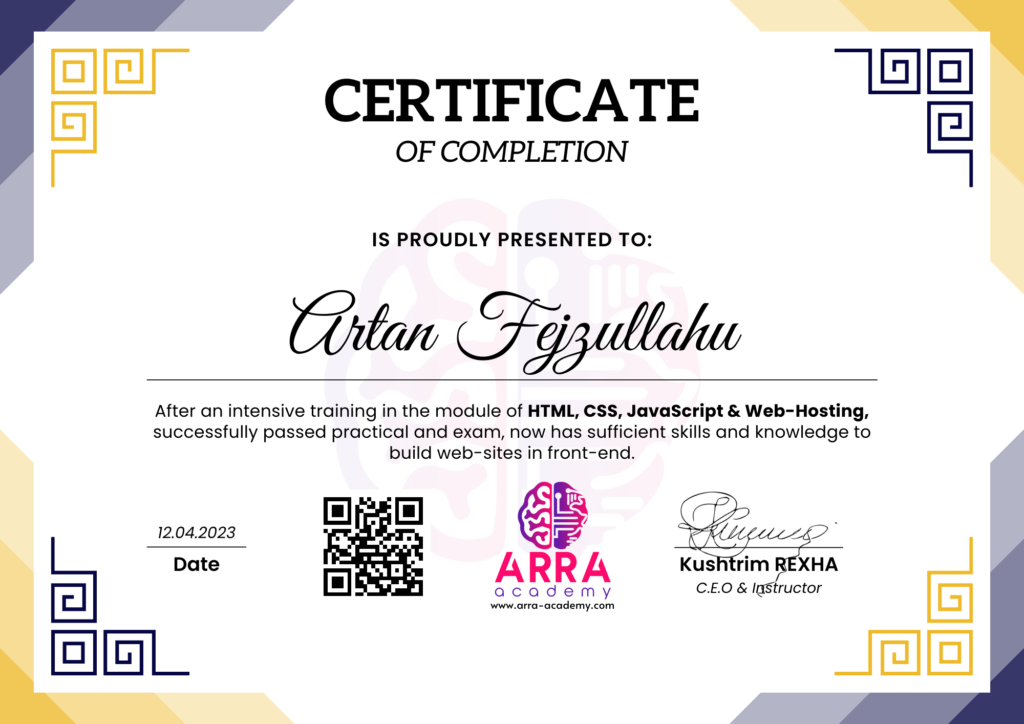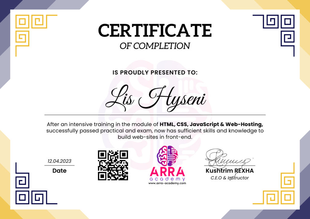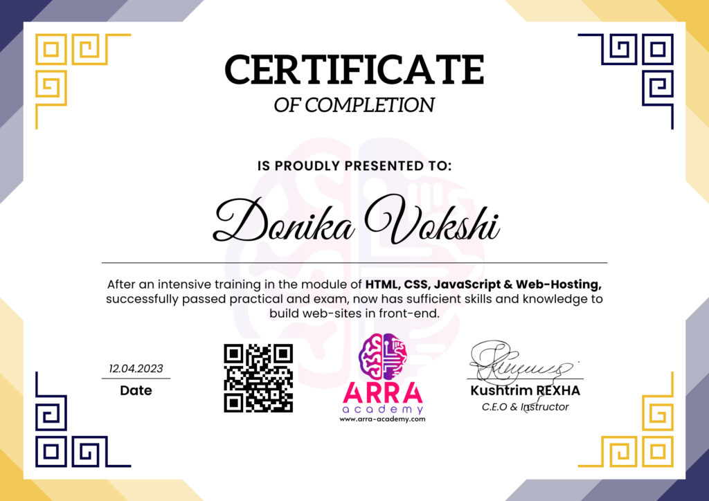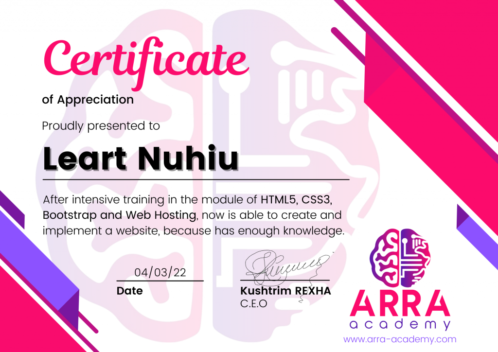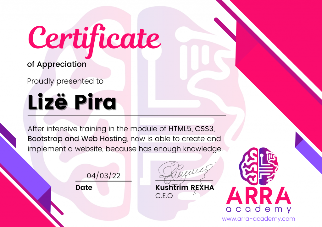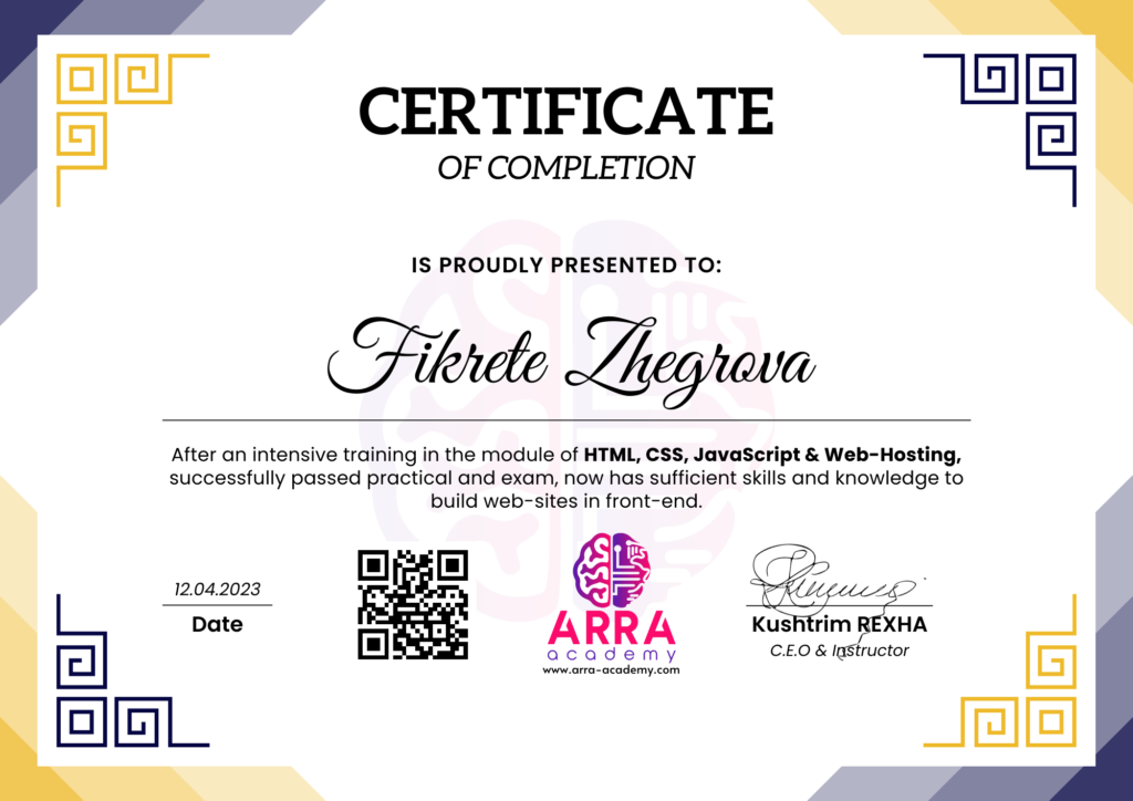 Çertifikatat nga moduli HTML/CSS/JAVASCRIPT & WEB-HOSTING