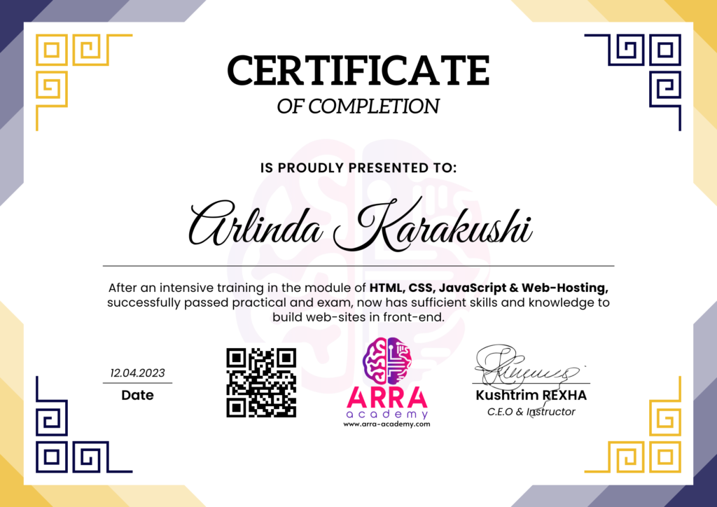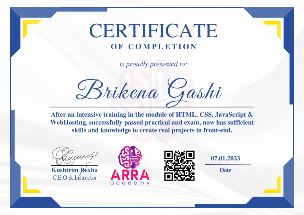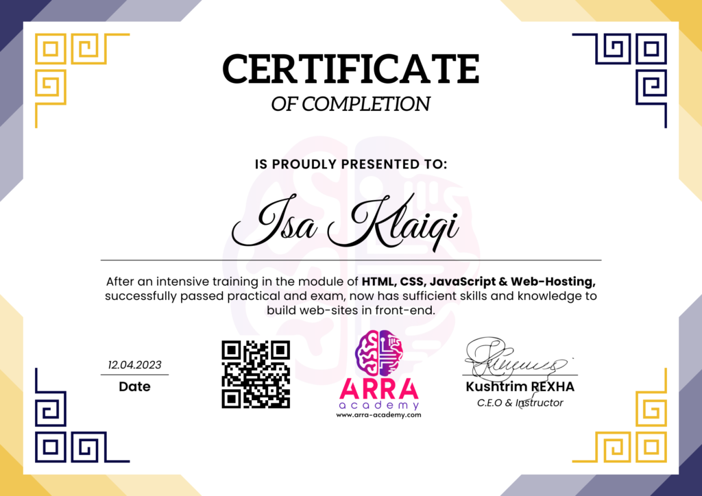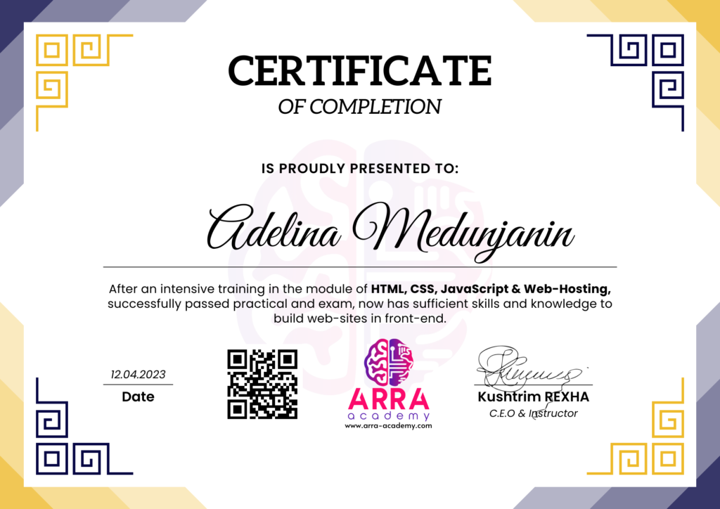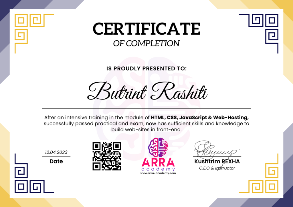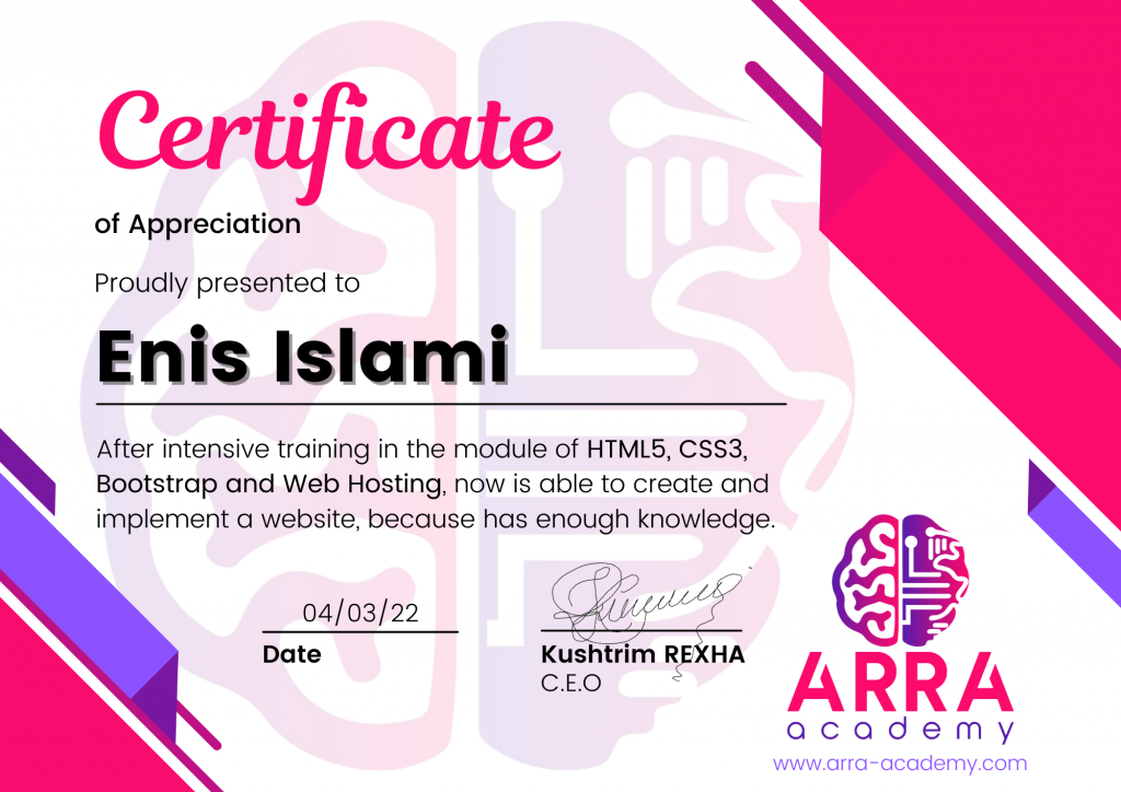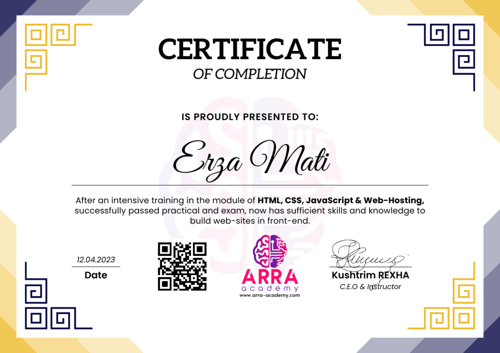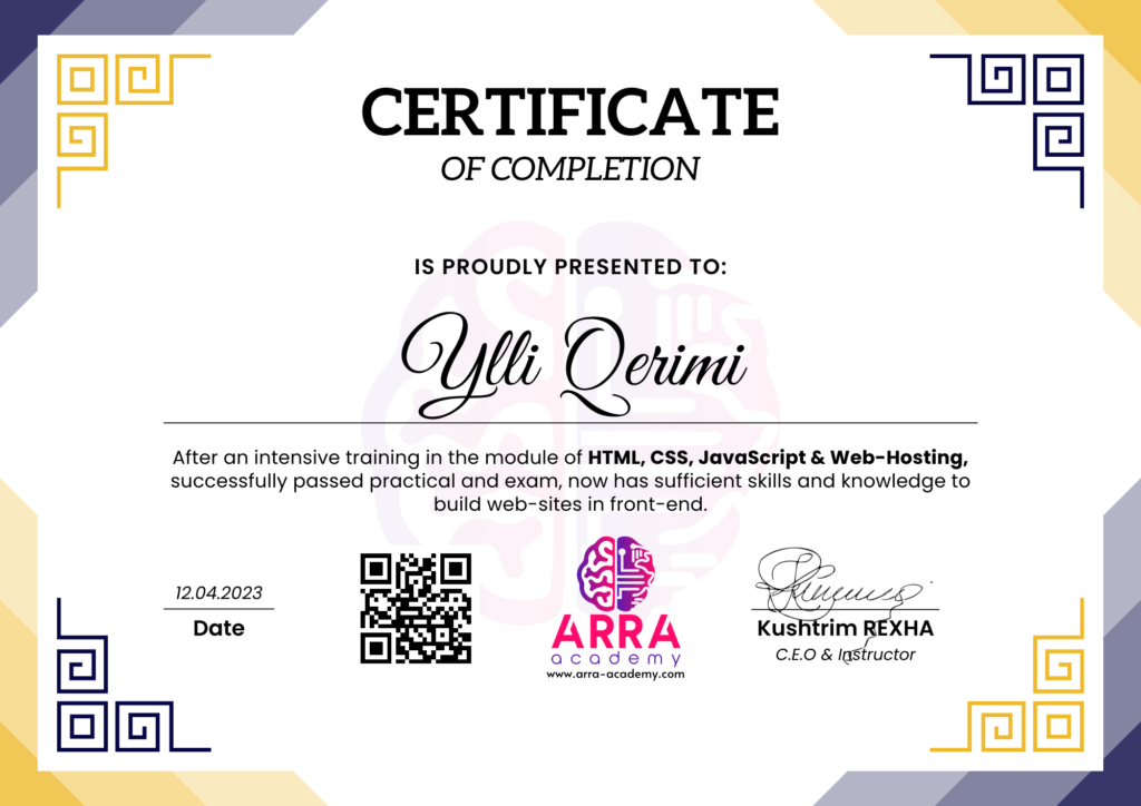 Çertifikatat nga moduli HTML/CSS/JAVASCRIPT & WEB-HOSTING
