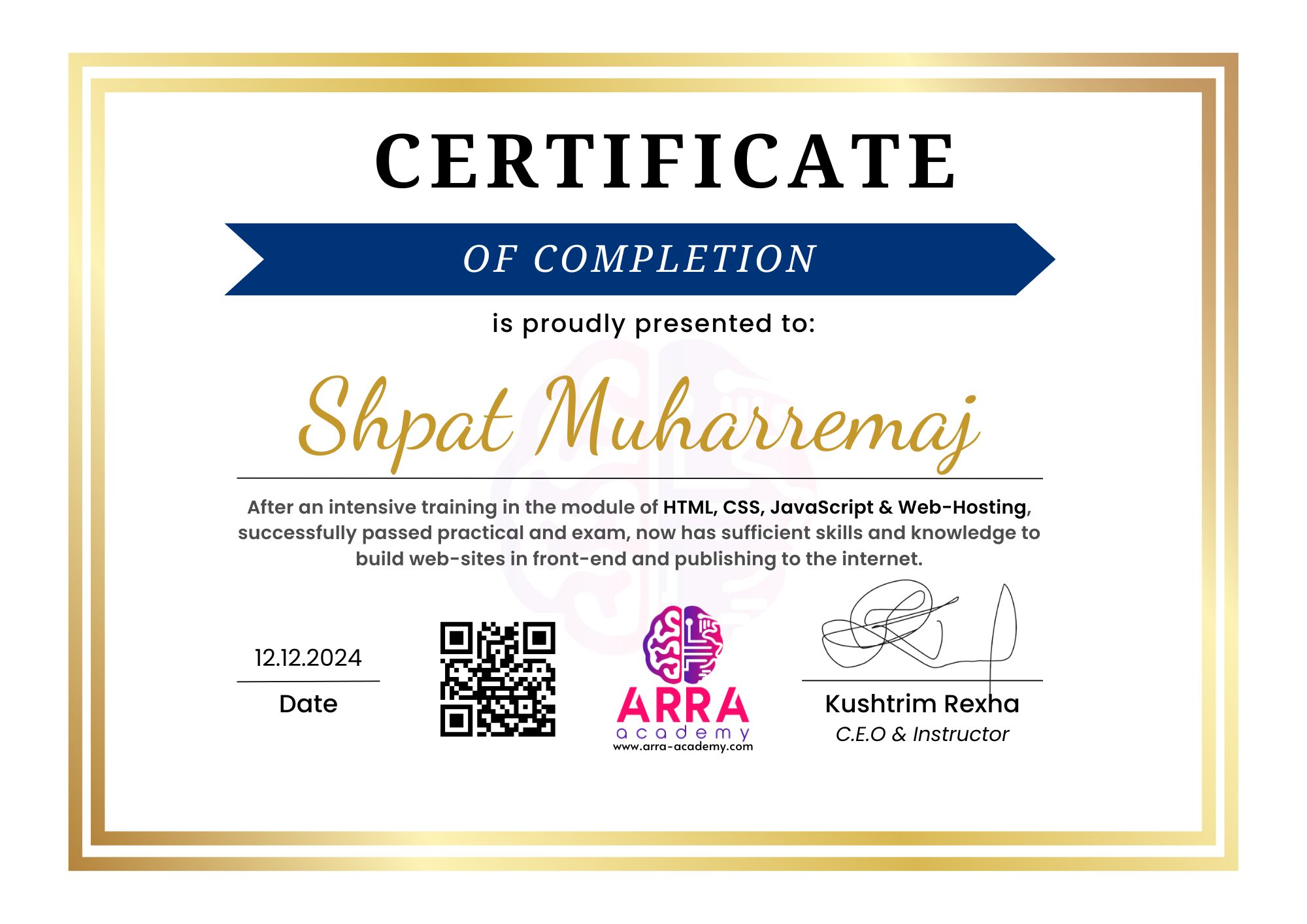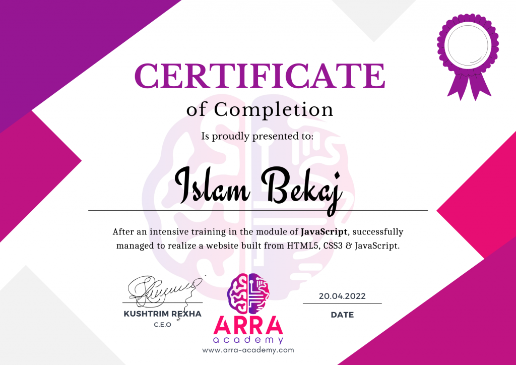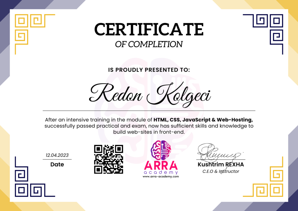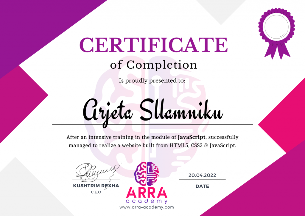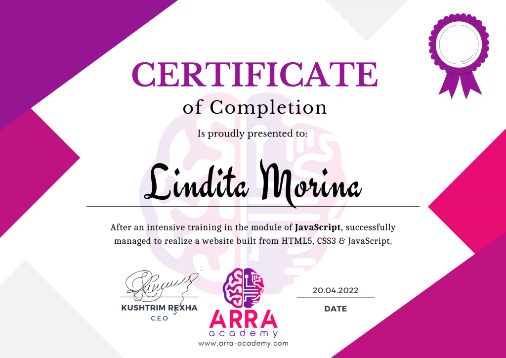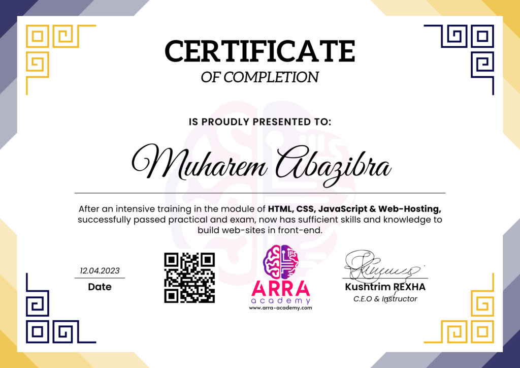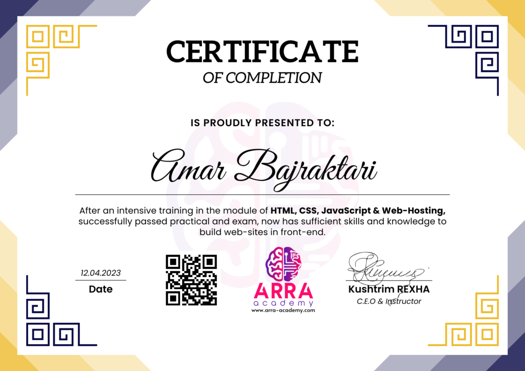 Çertifikatat nga moduli HTML/CSS/JAVASCRIPT & WEB-HOSTING