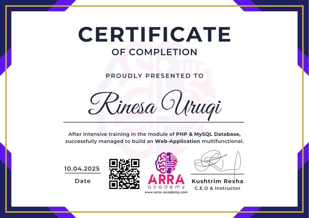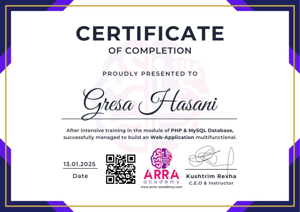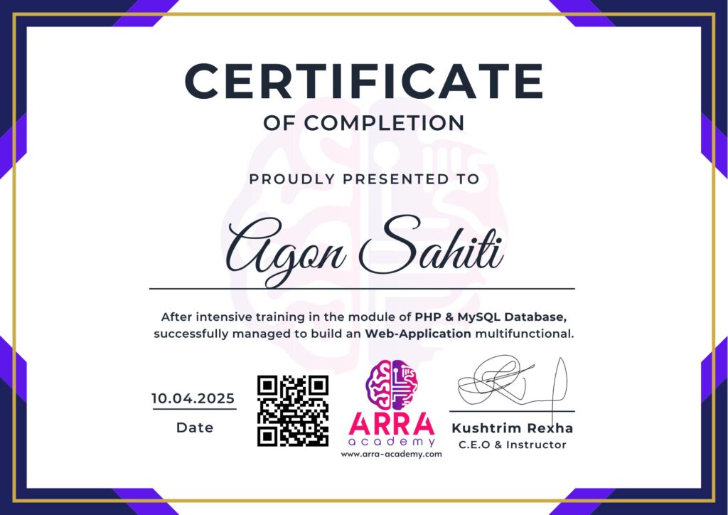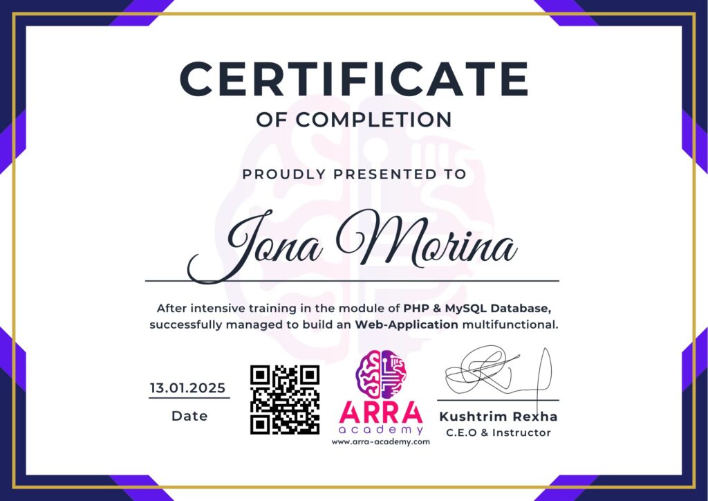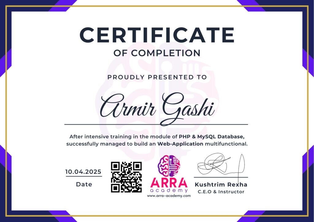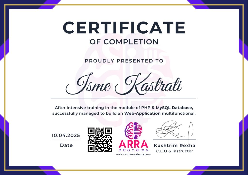 Çertifikatat nga moduli PHP & MySQL