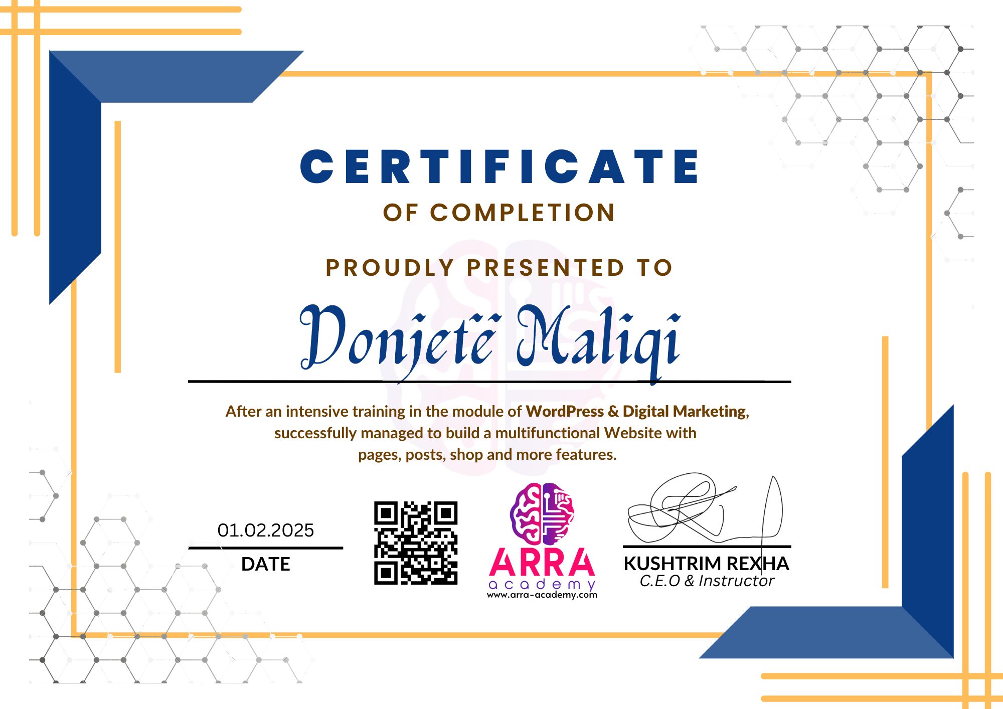 Çertifikatat nga moduli WordPress & Marketing Digjital